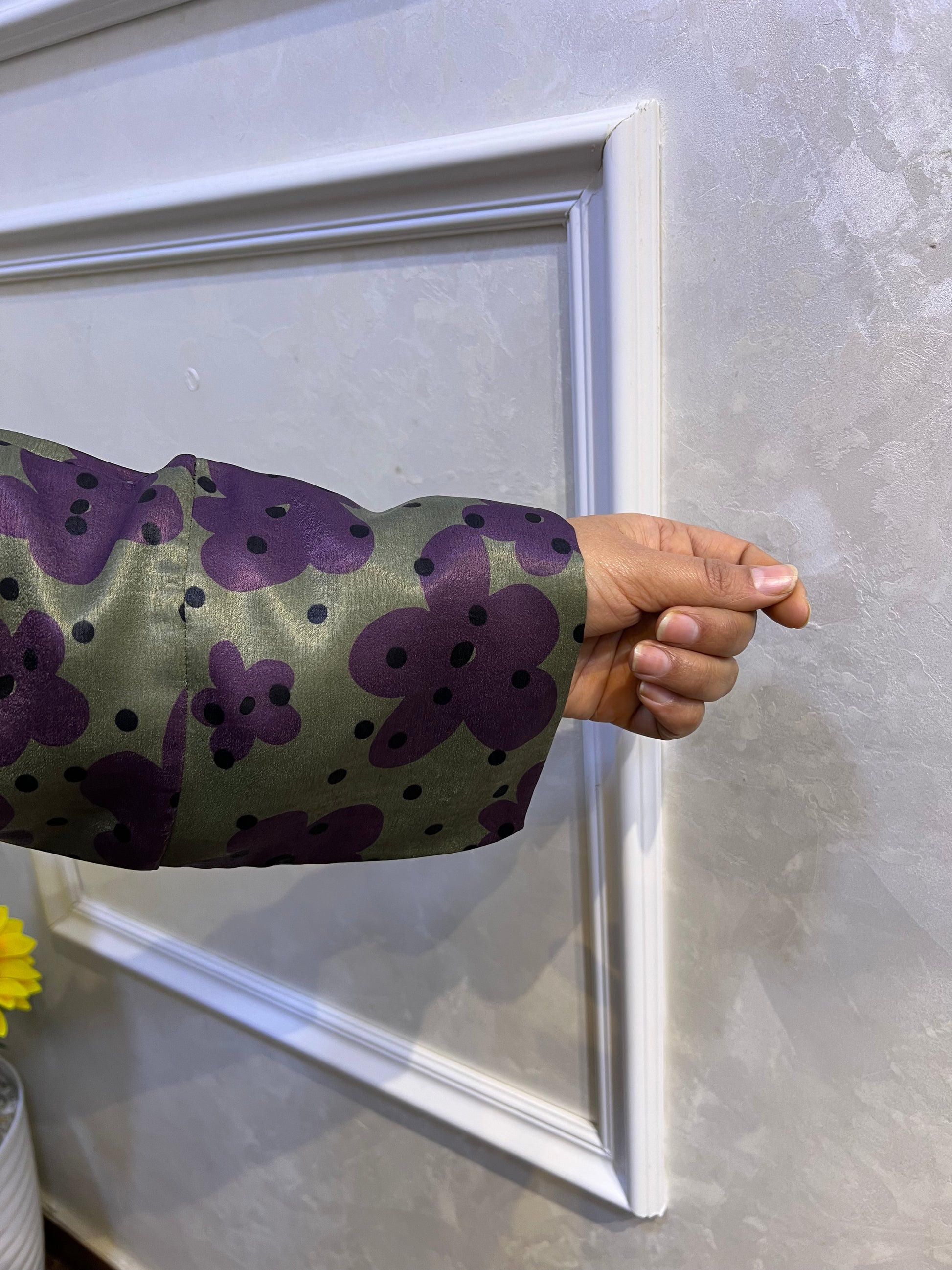 🎨 اللون: أخضر بنقشة بنفسجية أنيقة